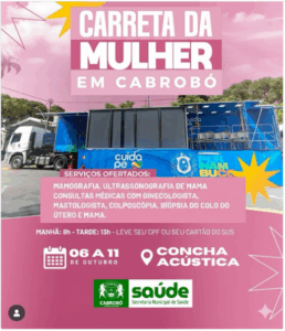 A Carreta da Mulher Pernambucana estará em Cabrobó, oferecendo atendimentos gratuitos e essenciais para a saúde da mulher.